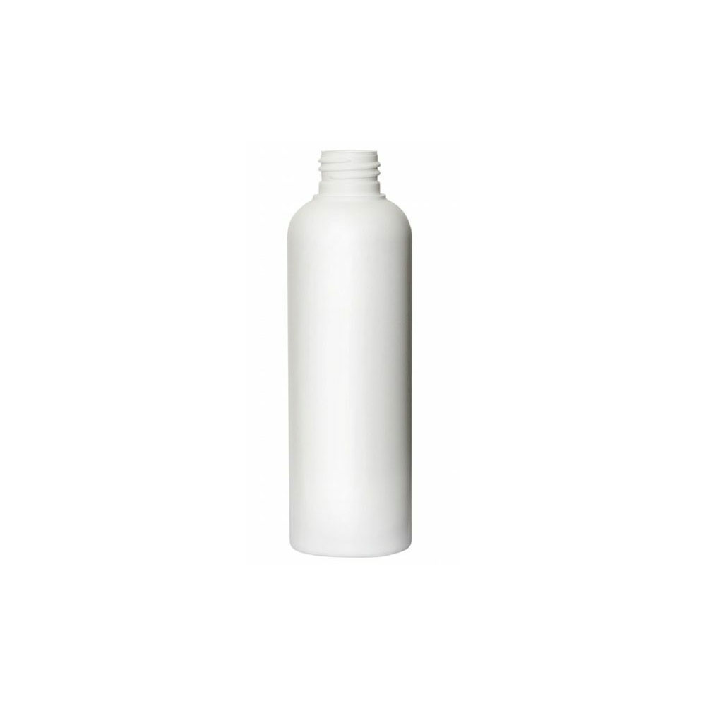 Vit PE-flaska. Plastflaskan rymmer 200 ml.
