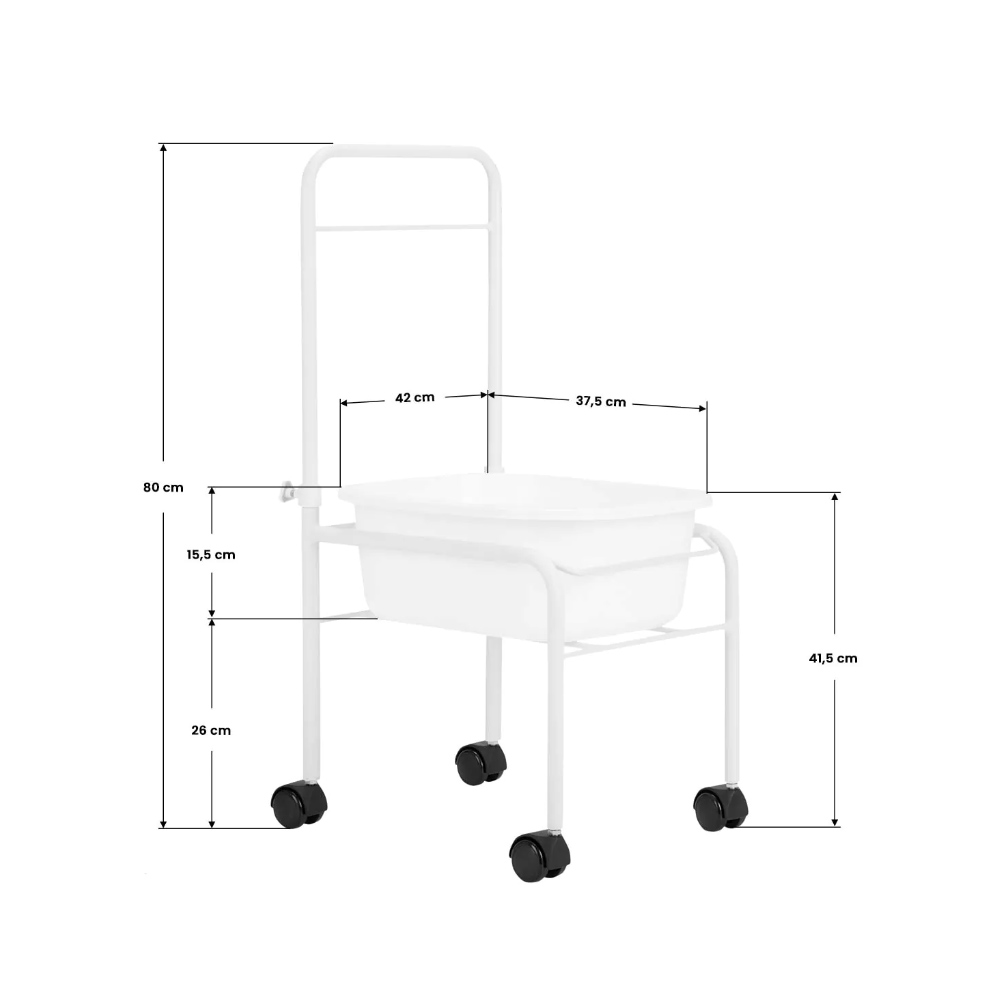 Stabil konstruktion för fotkar. Med hjul och handtag som underlättar förflyttning.