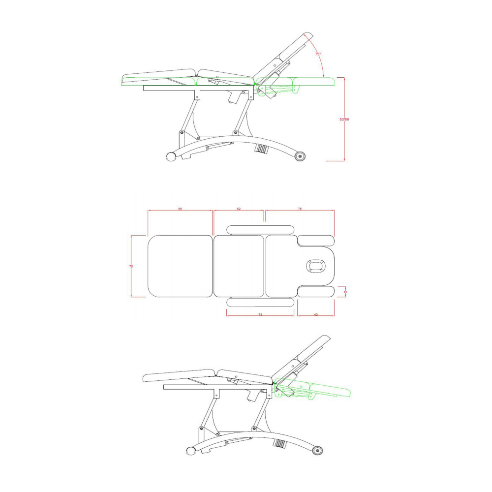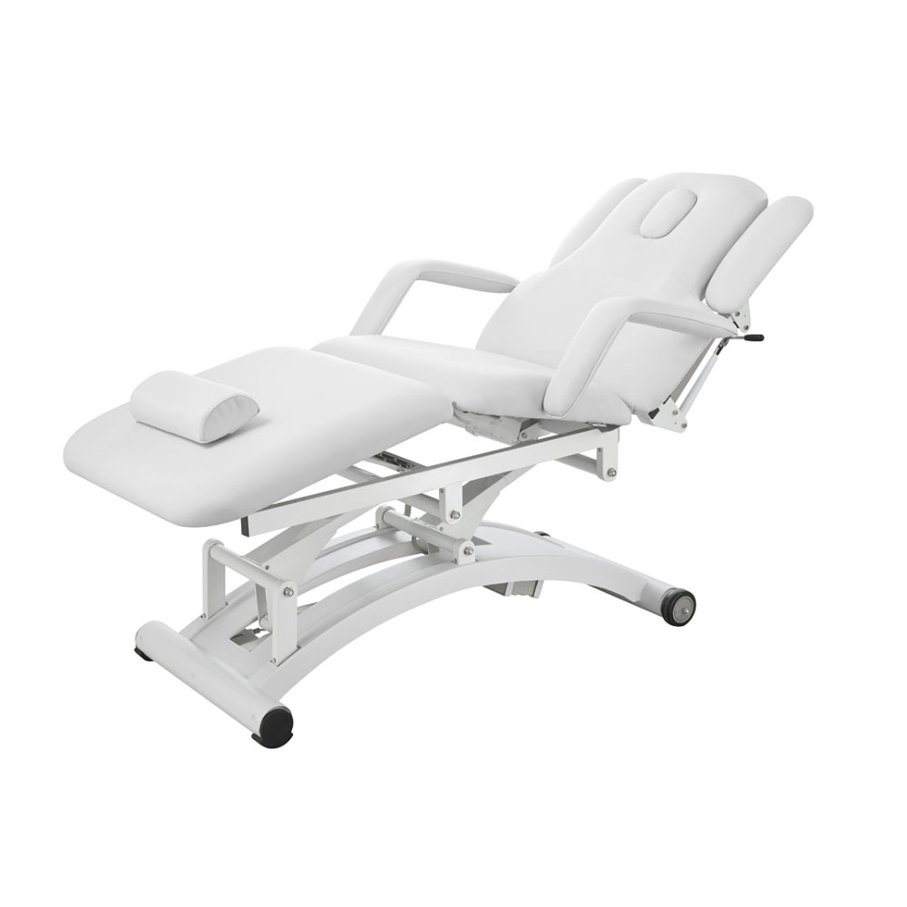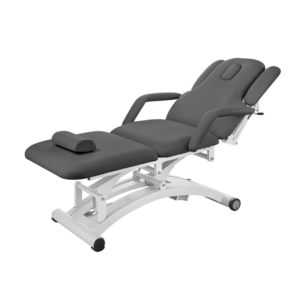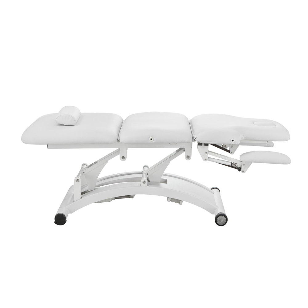 En bekväm behandlingsbänk med flera funktioner. Denna praktiska behandlingsbänk styrs med 3 motorer för ergonomiskt arbete. 2 typer av armstöd varav de på långsidorna går att ta bort. Kudde i huvuddelen som kan tas bort för andningshål. Extra britsdyna medföljer. Två hjul underlättar vid förflyttning av brits. Hållare för britspapper medföljer. Finns i två olika färger: vit eller grå