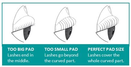 Välj storlek på paden utifrån vilket resultat som vill uppnås och hur långa kundens fransar är.